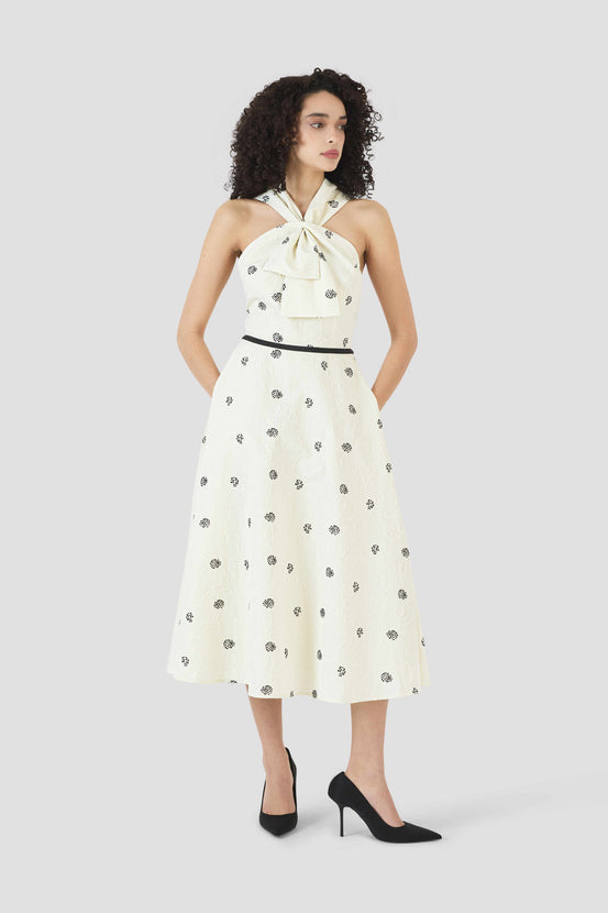 Cut in Moire Tracee, the fabric’s subtle texture enhances the golden hue, while a ribbon-tie closure at the back adds a touch of softness. Pair it with the Easy Straight Skirt for a refined, elongated look that transitions effortlessly from day to evening.